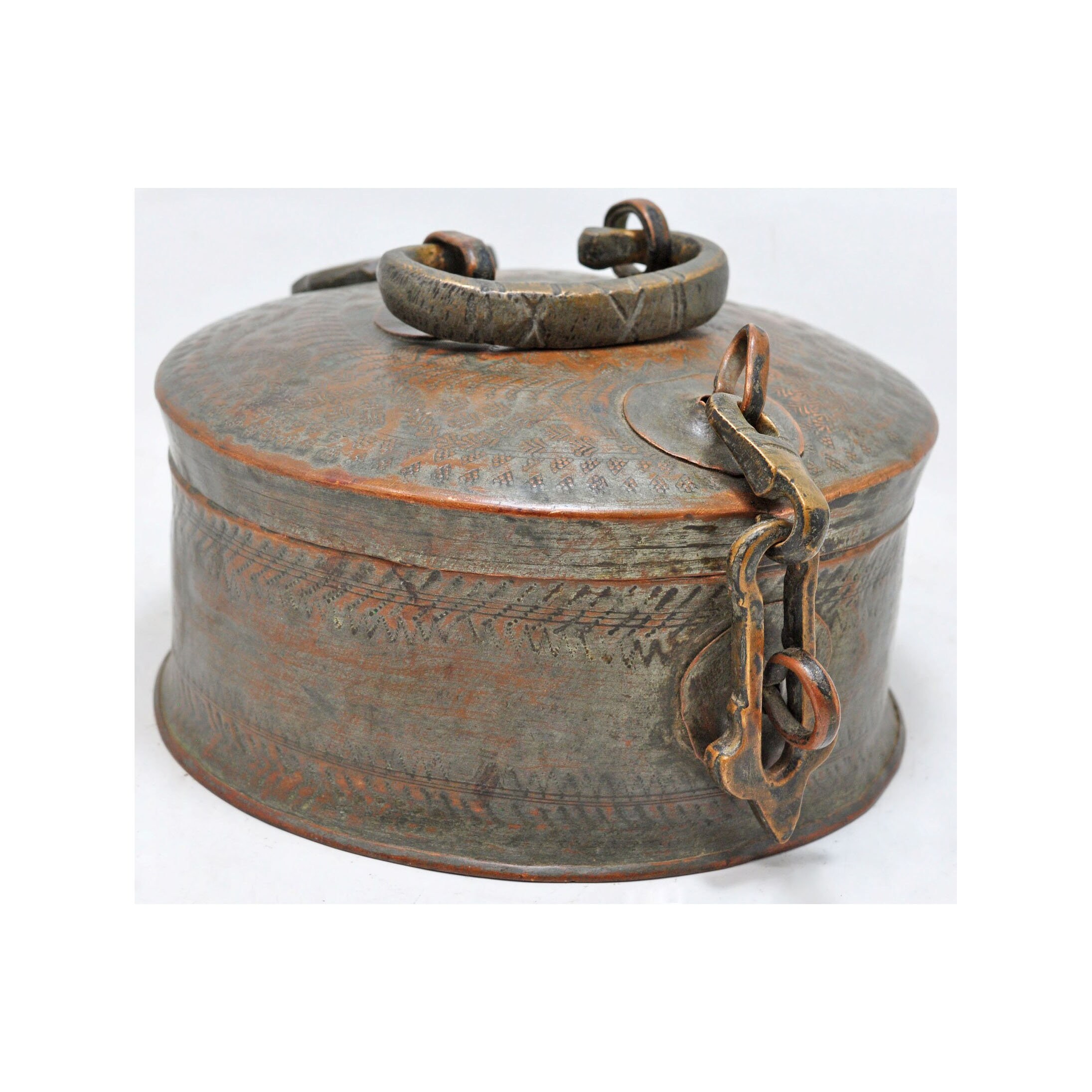 Antique Copper Round Chapati Bread Box Original Old Hand Crafted Fine Engraved Etsy